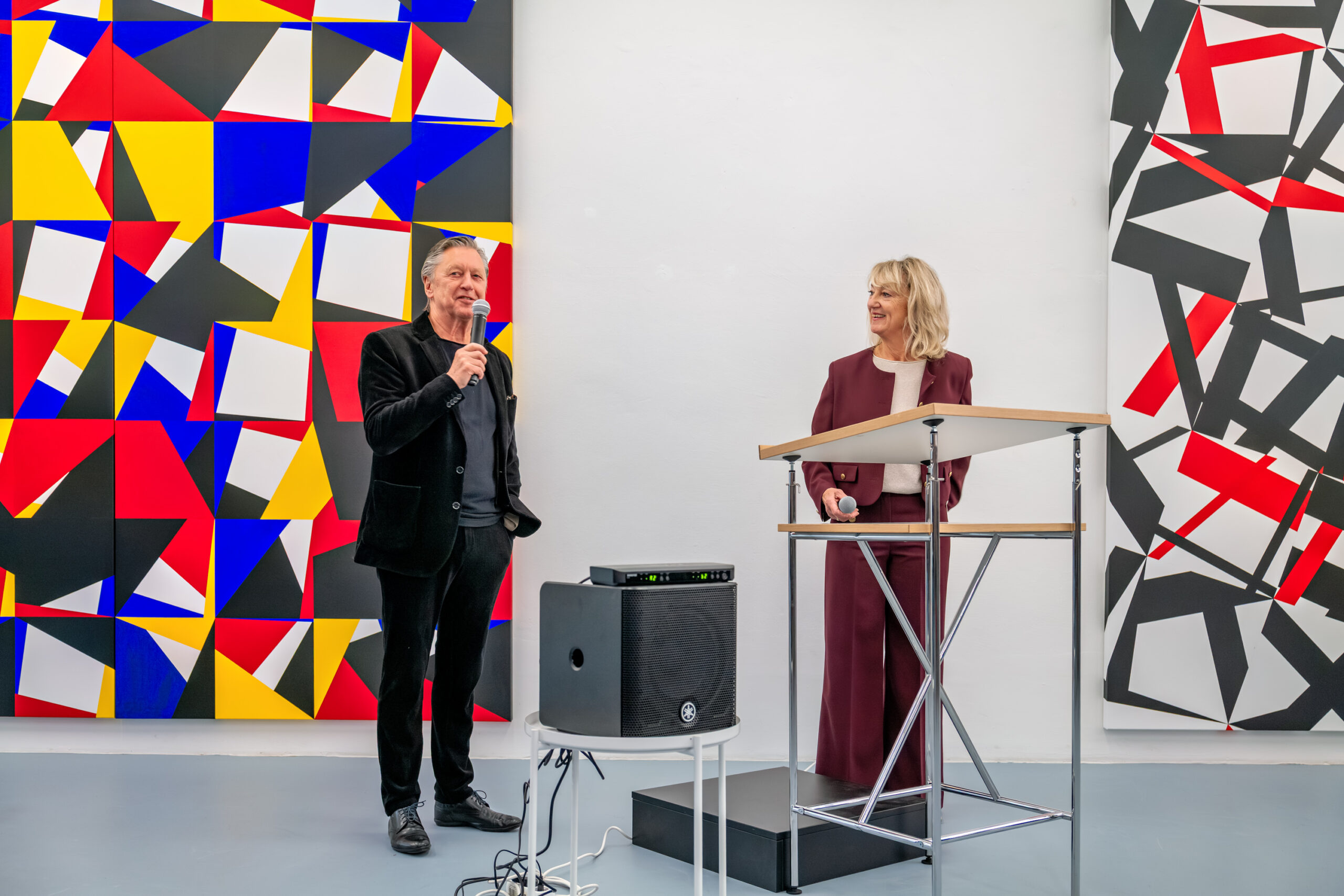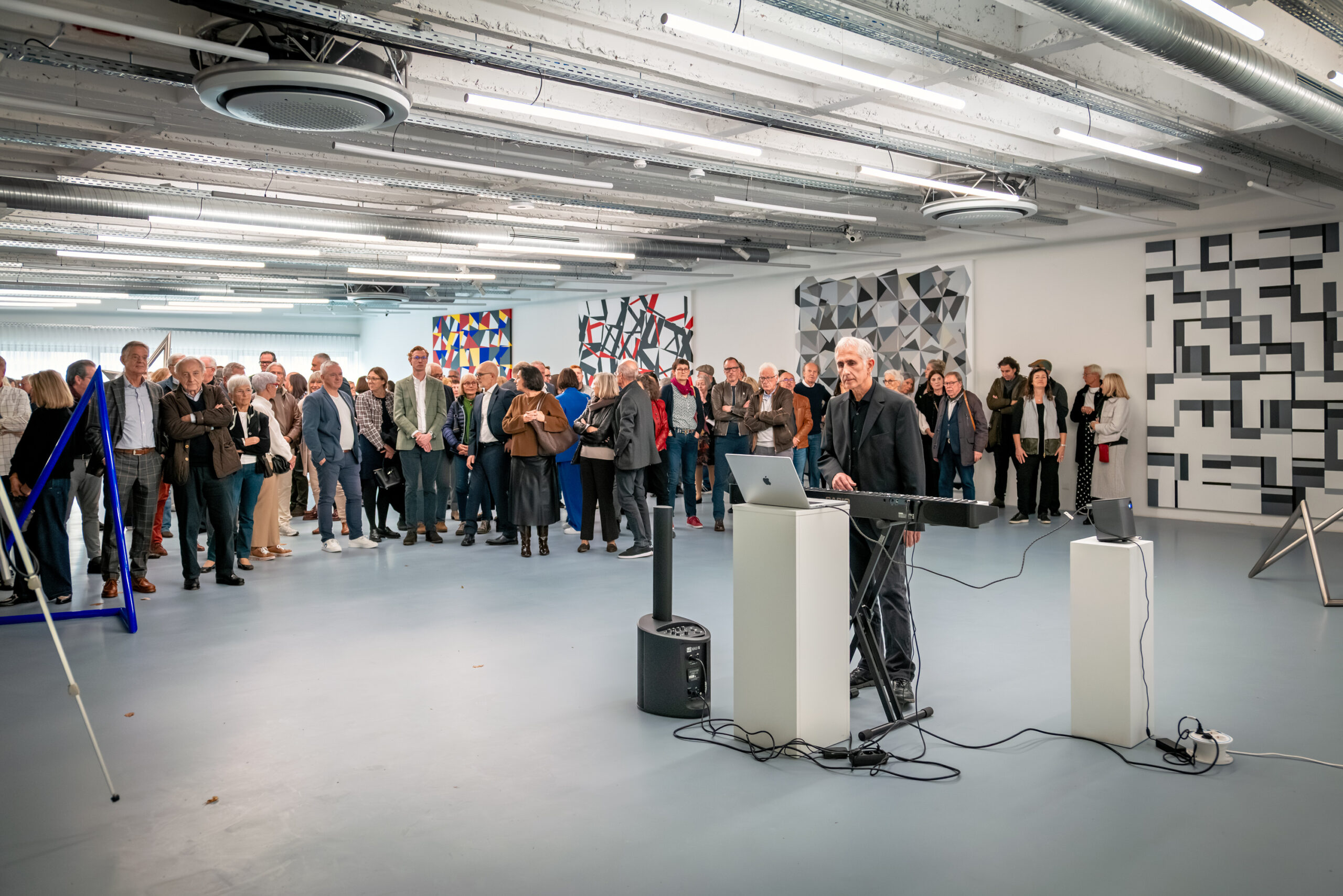 Der Essener Künstler Norbert Thomas steht in der Tradition der Konkreten Kunst, die er seit über 50 Jahren auf eigenständige Weise immer wieder neu in verschiedenen Werkreihen interpretiert. Thomas konzentrierte sich von Anfang an auf die objektivierende Gestaltung der Relation von Form und Farbe. Seit den 1970er Jahren untersucht er in einer vertikal-horizontalen Grundordnung mit Hilfe des „gelenkten Zufalls“ das Verhalten geometrischer Elemente zueinander. Es geht in seiner Arbeit um die Verbindung von System und Zufall und um neue Formen der Wahrnehmung. Das für den Kunstring Folkwang geschaffene Wandrelief „system-2“ aus weiß beschichtetem Plexiglas und der zugehörige zweifarbige Siebdruck sind dabei zwei Seiten einer Medaille und Teil einer sich bei Thomas beständig fortschreibenden methodischen Strukturveränderung. Die weißen bzw. schwarzen Formen werden dabei durch die Farbe Neon-Orange in einen Schwebezustand versetzt: Beim von der Wand leicht abstehenden Relief durch die Einfärbung der Rückseite und beim Siebdruck durch eine farbige Umrandung des tiefschwarz gedruckten Linienrasters. In beiden Fällen erzeugt der Lichtschein den Eindruck von Immaterialität, welche einer eher strengen Rasterästhetik geometriebasierter Kunst auf erfrischende Weise zuwiderläuft.